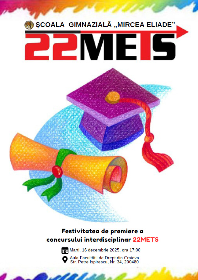 -Repartizarea pe săli a elevilor participanți la Olimpiada Micilor Istorici „Nicolae Iorga” Lista funcțiilor din Școala Gimnazială „Mircea Eliade” Craiova la 31 martie 2025Lista posturi 2025-2026 SGMERezultatele la Olimpiada Micilor Istorici „Nicolae Iorga”- faza județeană martie 2025 Concursul județean cultural „Marin Sorescu-Puterea cuvântului”-5 martie 2025